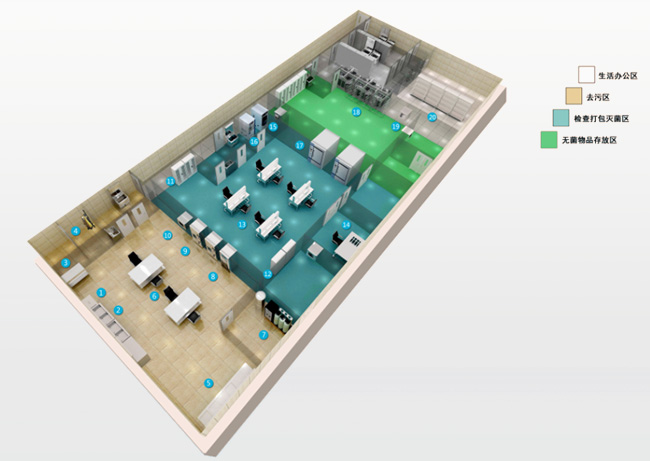 工作人員對滅菌物品進(jìn)行準(zhǔn)備的工作區(qū)域;在此區(qū)域工作人員對所有器械進(jìn)行清潔質(zhì)量、功能完好方面的檢查,確認(rèn)合格后進(jìn)行包裝、滅菌;含敷料制作間、檢查包裝間、高溫滅菌區(qū)、低溫滅菌區(qū)、人員進(jìn)出緩沖間等。